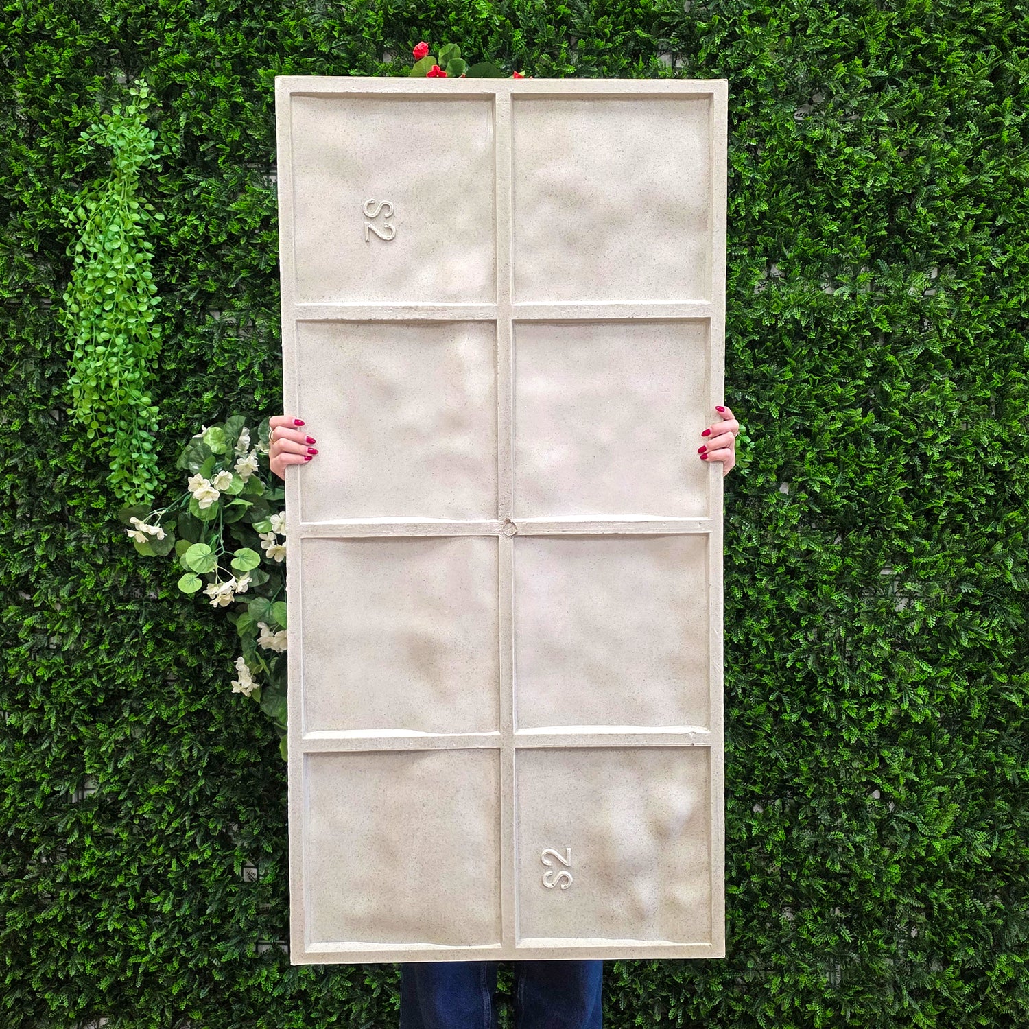 Produzido em poliuretano de alta densidade, combina leveza com resistência. Suporta humidade, água, calor e exposição solar, mantendo o seu aspeto intacto ao longo do tempo, tanto em interiores como em exteriores.