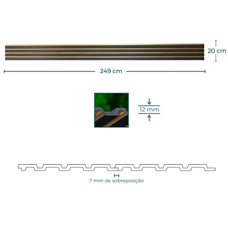 28.29€ / m²101.28€ / CaixaPainel ripado - ripa larga baixa - pedra/bronze 2,49m