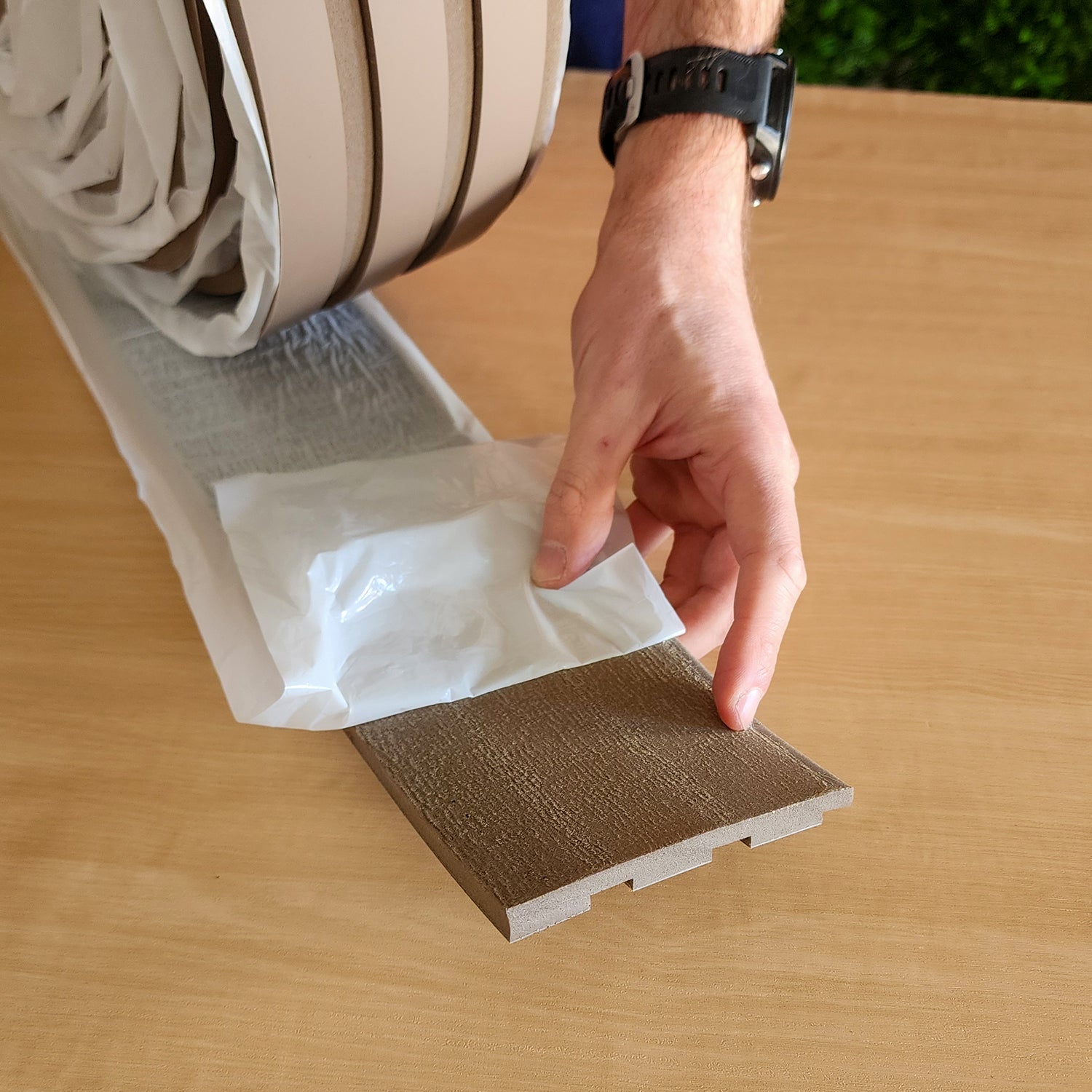 Painel ripado bege/castanho claro - autoadesivo - Rolo com 10 metros lineares e 10cm de largura