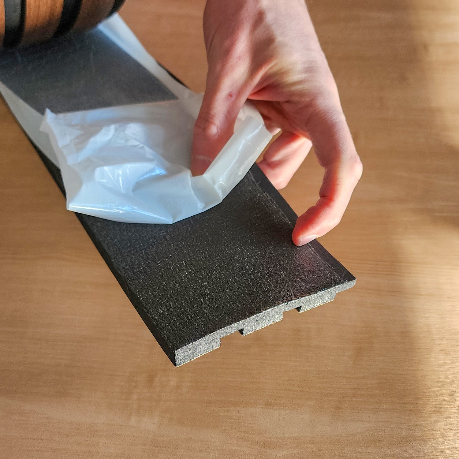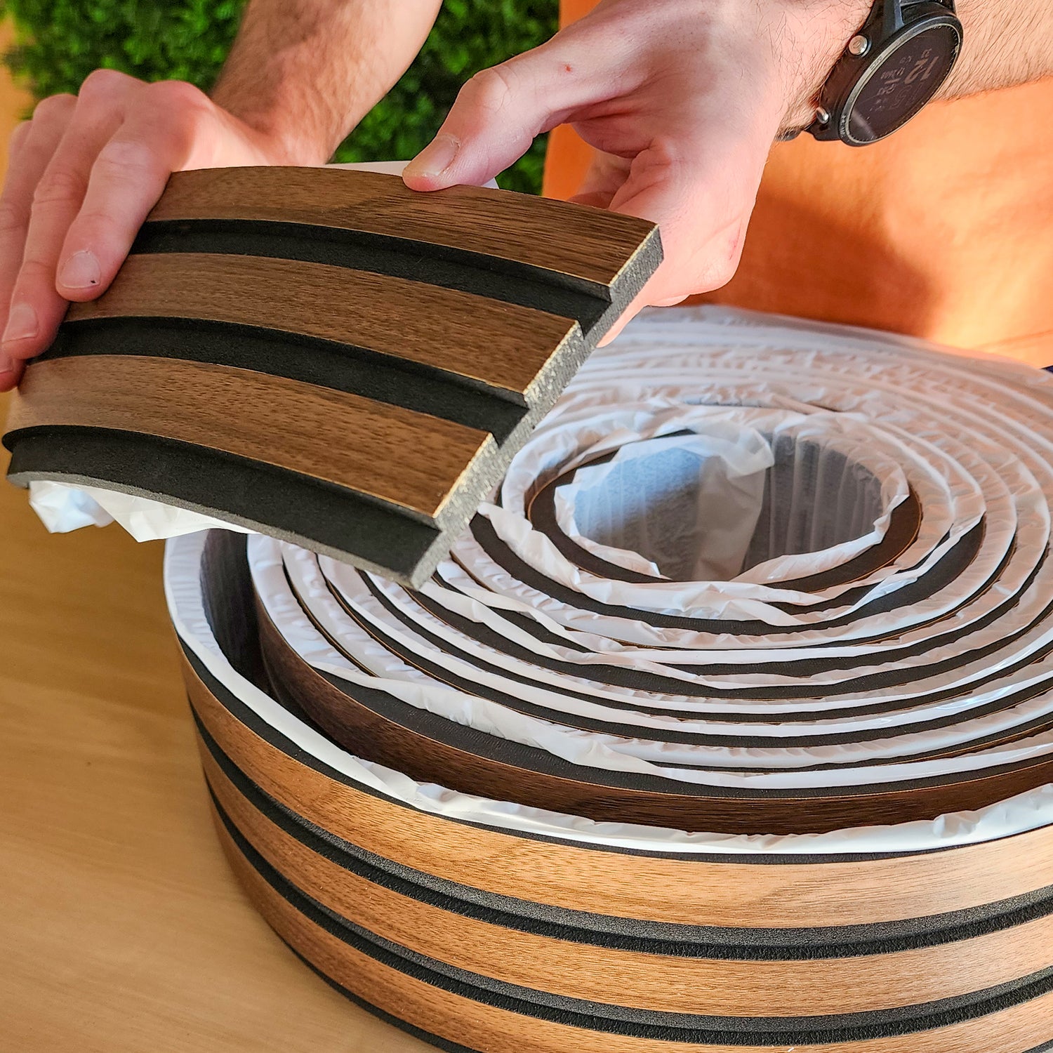 Painel ripado preto/castanho - autoadesivo - Rolo com 10 metros lineares e 10cm de largura