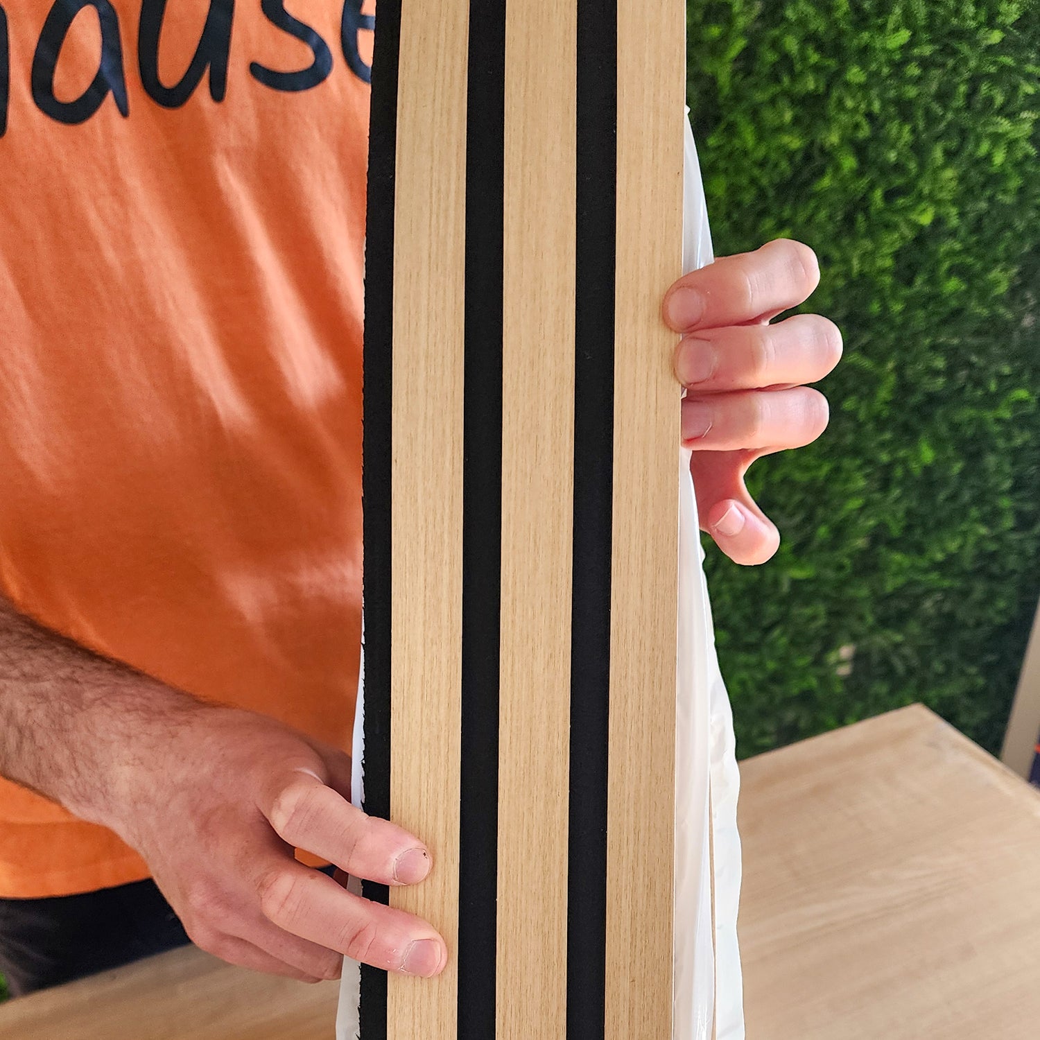 Se queres dar mais detalhe à parede sem escurecer a divisão, o painel ripado autoadesivo preto/castanho claro é a escolha certa. O efeito madeira clara cria profundidade visual e combina com qualquer estilo. A aplicação é simples e rápida, ideal para remodelações que podes fazer tu mesmo.