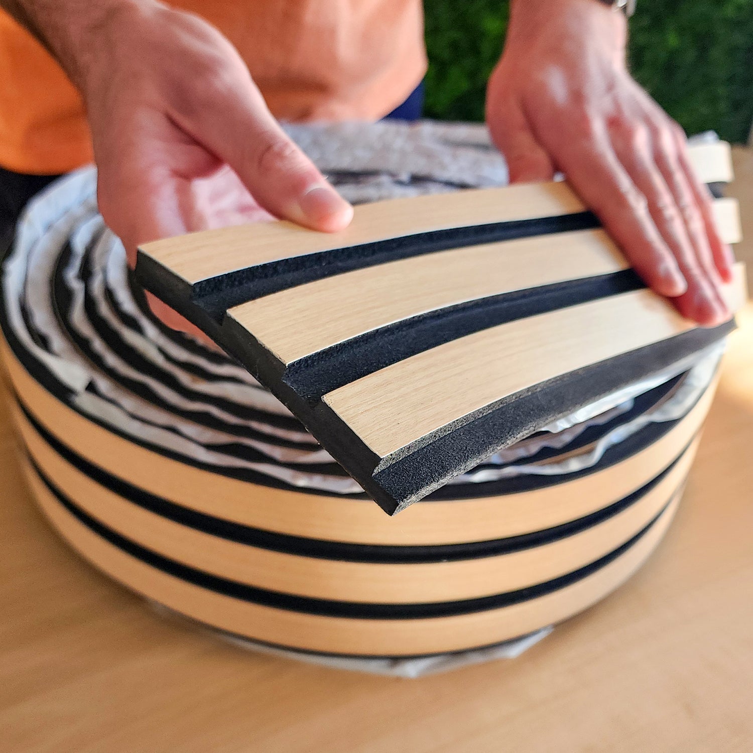 Painel ripado preto/castanho claro - autoadesivo - Rolo com 10 metros lineares e 10cm de largura