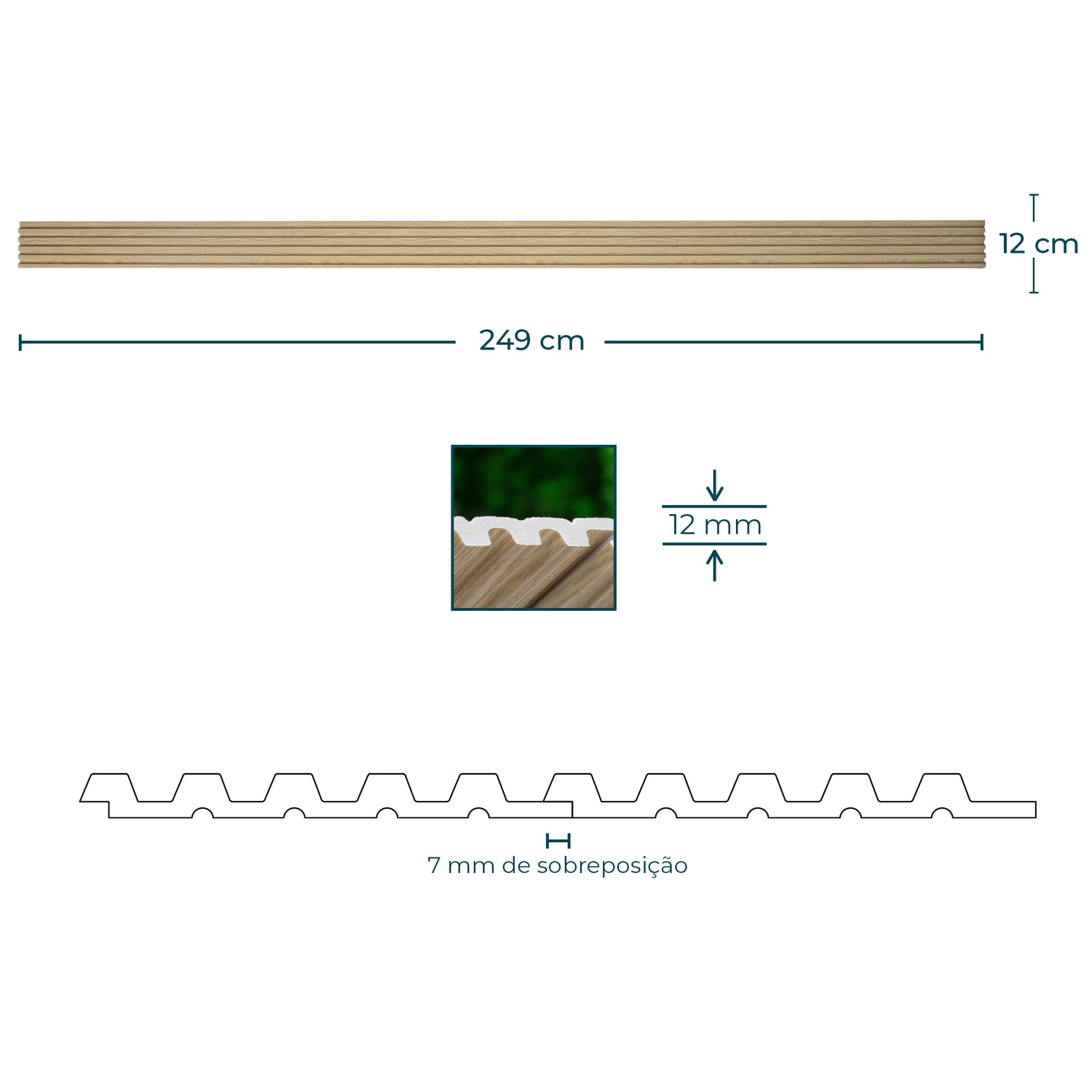 Painel ripado castanho claro - Ripa fina - 2,49 metros de altura | Caixa com 12 peças - 3,39 m2