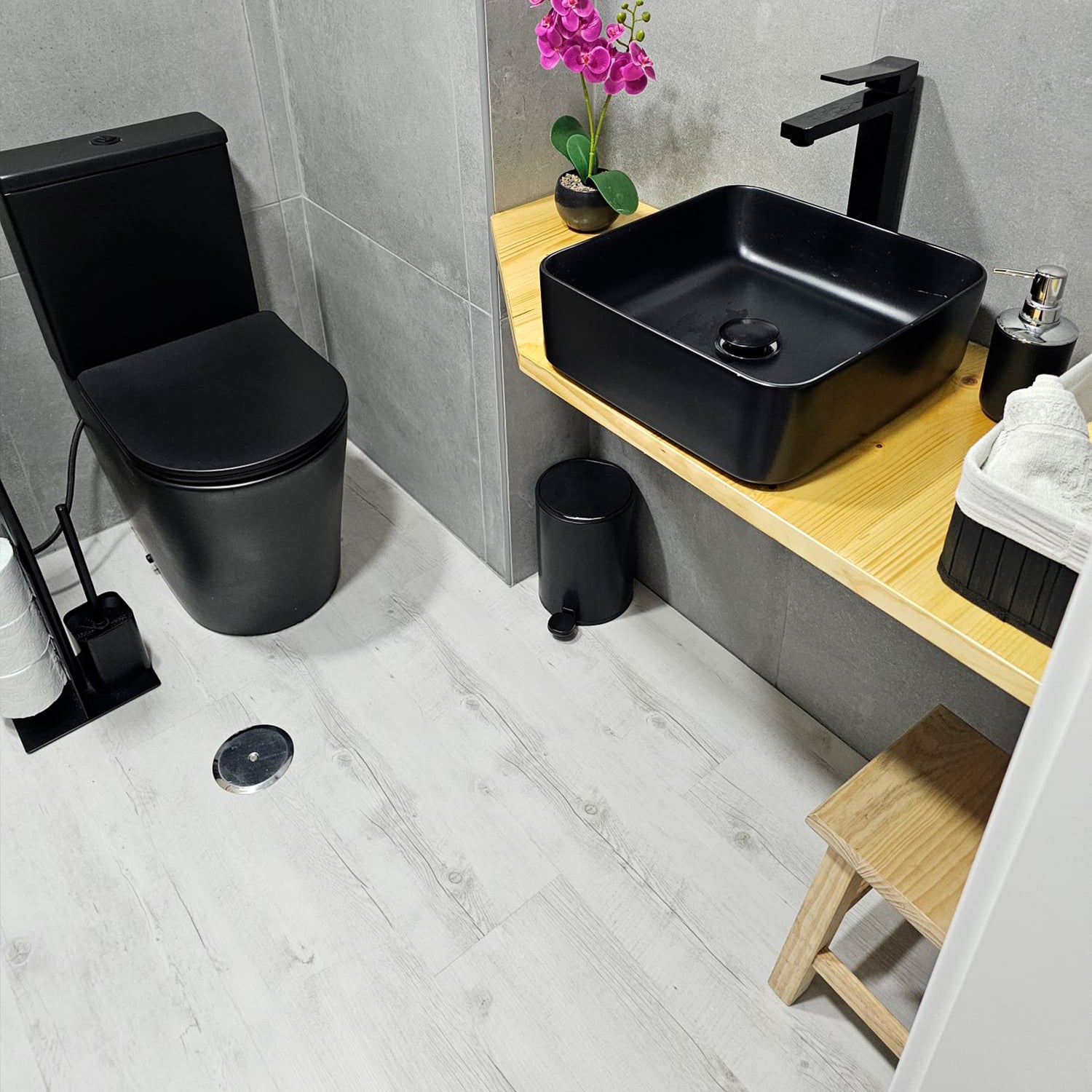 Por ser antiderrapante e resistente à humidade, o pavimento vinílico flutuante cinza claro é ideal para cozinhas e casas de banho. O isolamento incorporado dá-te mais conforto térmico, para andares descalço em casa.