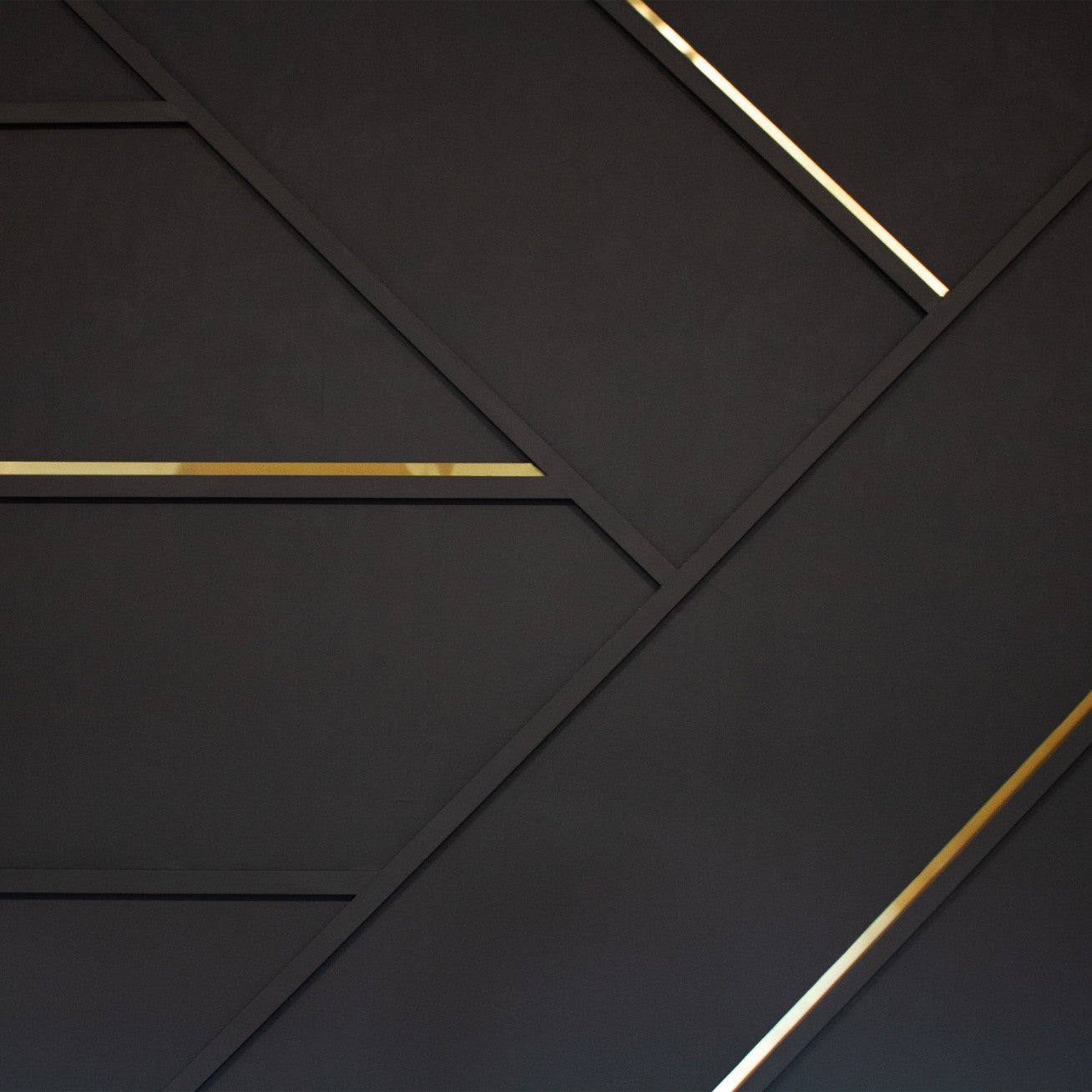 Fita adesiva decorativa metálica dourada de 20mm com acabamento escovado. Para complementar decorações com painel ripado e frisos boiseries. Adesivo forte para facilitar a fixação à parede.