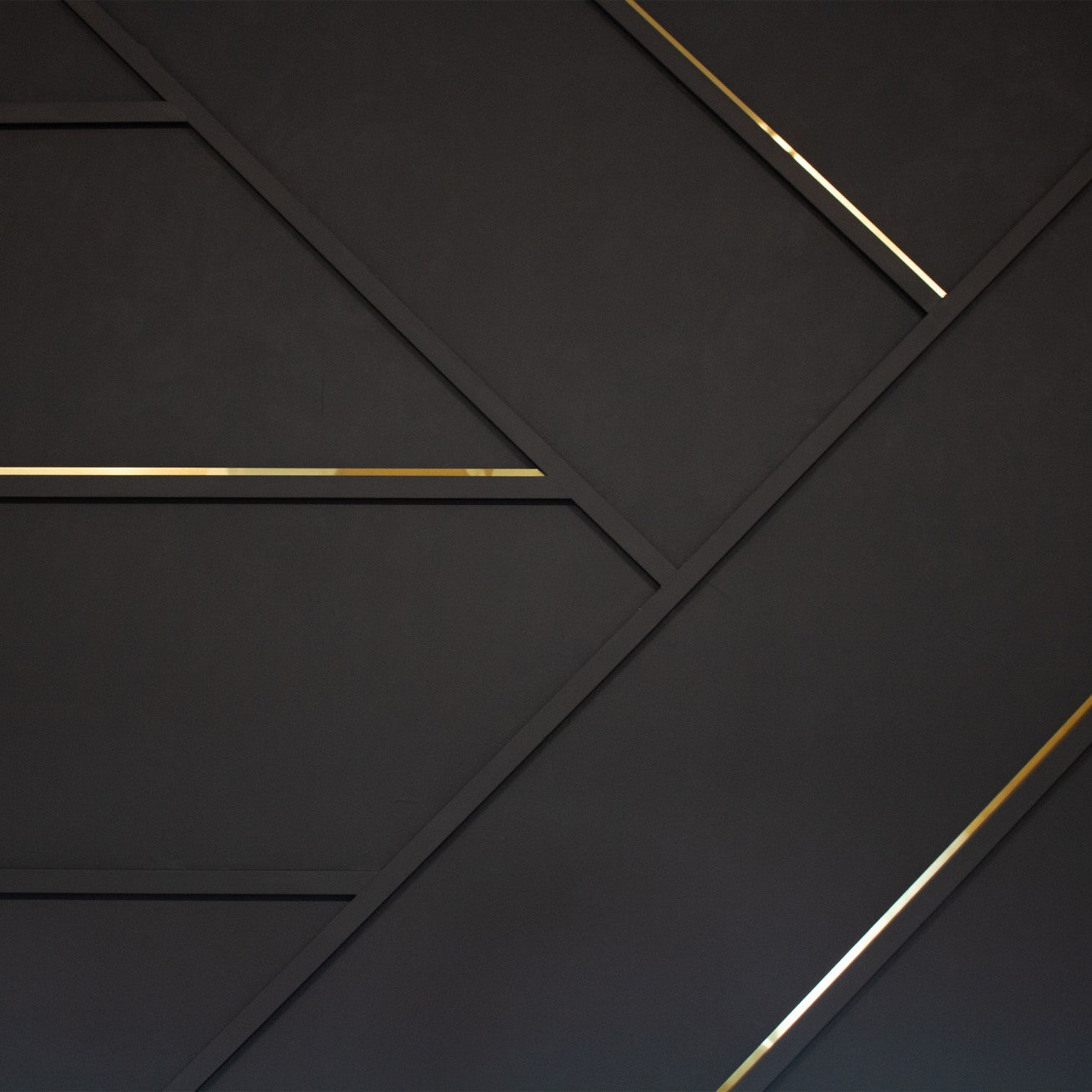 Fita metálica decorativa dourada de 10mm com acabamento escovado. Perfeita para colocar em paredes, móveis e portas ou conjugar com outros revestimentos, como frisos boiseries e painel ripado.