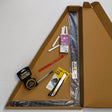 Pack de instalação de diferentes revestimentos. Inclui X-ato, esquadro, giz, fita métrica, lápis de carpinteiro.