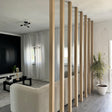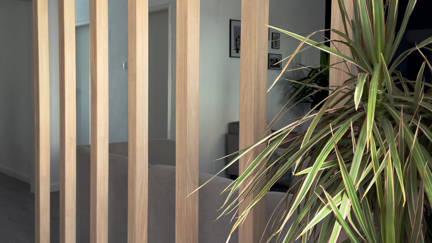 As divisórias de ambiente da Kiause são vendidas à unidade (ripa), com 2,8 m de altura. Cada unidade inclui duas peças de fixação (base e topo) e dois perfis que se encaixam para formar a ripa com o seu aspeto final.