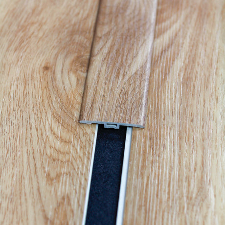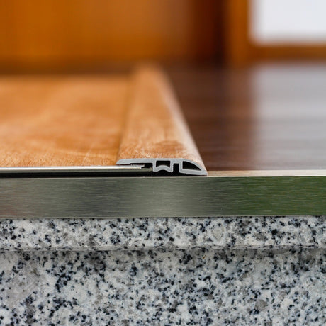 Podes utilizar perfis da mesma cor do pavimento para fazer os acabamentos e transições.