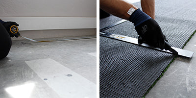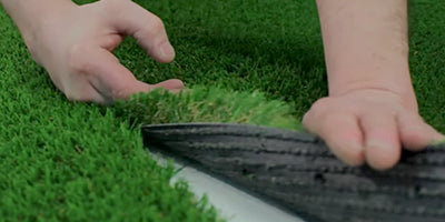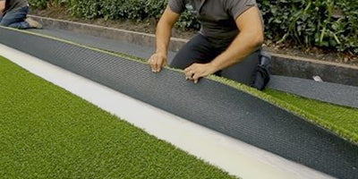 Assegura-te que unes bem as juntas das diferentes tiras, para ficares com uma instalação contínua e sem uniões visíveis. Repete este passo com todas as tiras de relva.