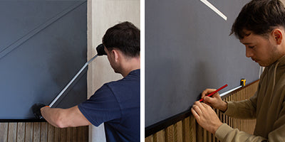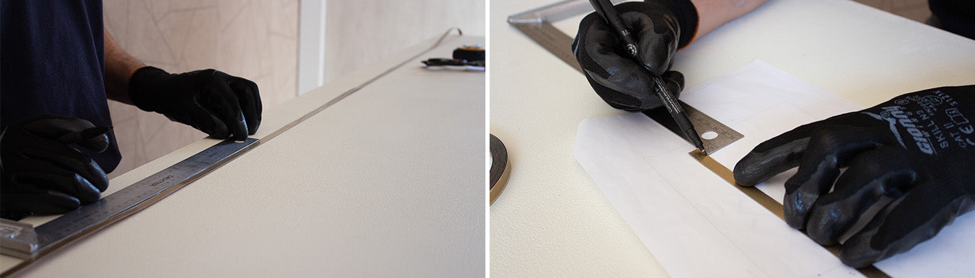 Com a fita métrica, mede o comprimento da área onde vais aplicar a fita e, com um lápis, marca os pontos de início e fim.