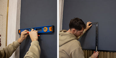 Com um nível, desenha as linhas na superfície. Isto vai ajudar-te a colocar as fitas no sítio certo e de forma nivelada.