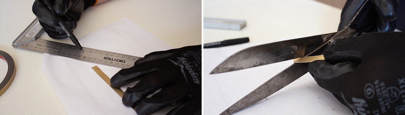 Antes de removeres a proteção do adesivo, posiciona as fitas metálicas na superfície para teres uma visão geral do resultado.