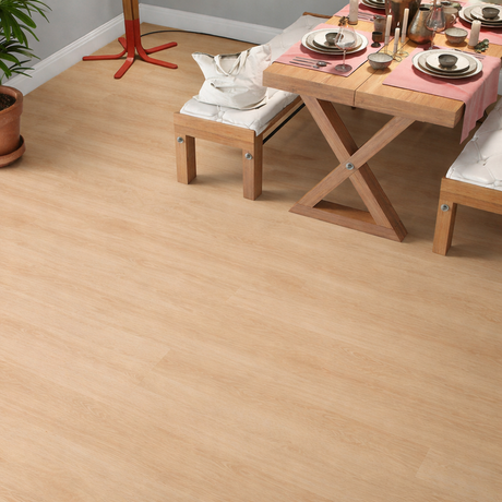 Durante a instalação do chão vinílico, sempre que mudas de divisão, deixa uma margem de 10mm para colocares o perfil de expansão.