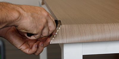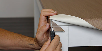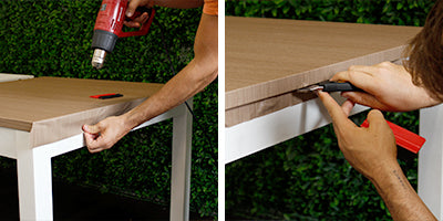 Volta a aquecer ligeiramente e pressiona para que o vinil fique bem fixo ao longo do canto. Se ainda houver excesso, corta com cuidado com o x-ato.